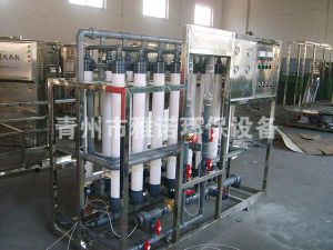 為了更好地保護反滲透設(shè)備,延長設(shè)備的壽命,提前處理原水,用活性炭和石英砂過濾去除大粒子雜質(zhì),用離子交換樹脂軟化去除水中的